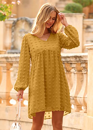 KIRUNDO Womens Dresses 2024 Spring Summer Long Sleeve Mini Dress V Neck Flowy Casual Swiss Dot Loose Babydoll Dress