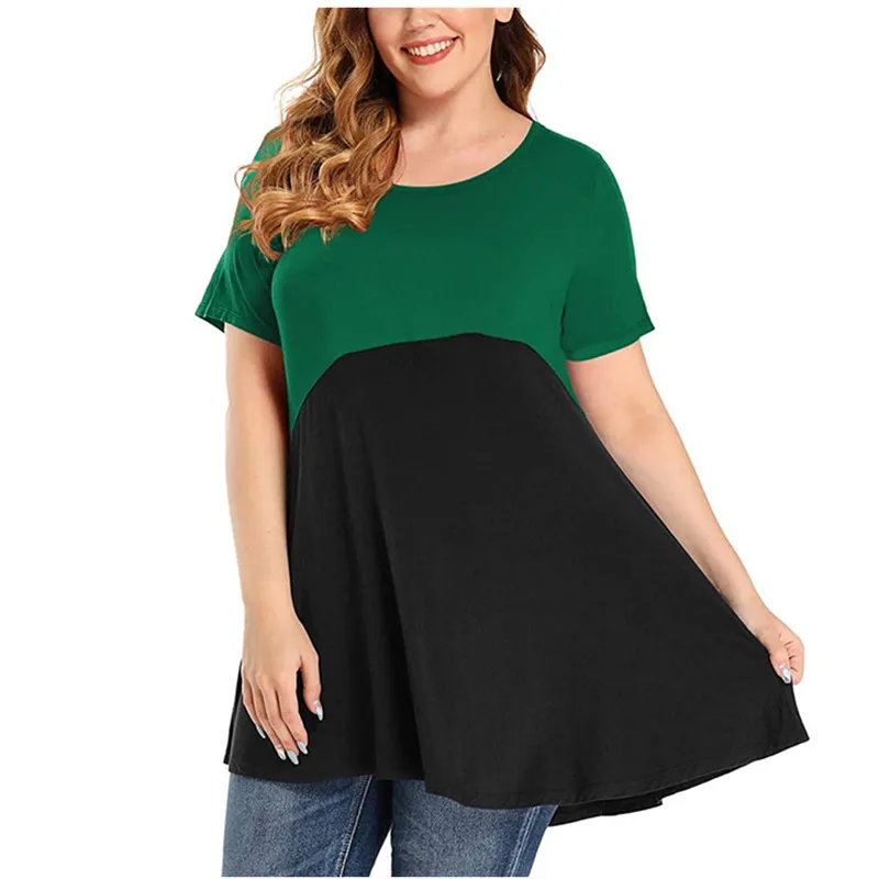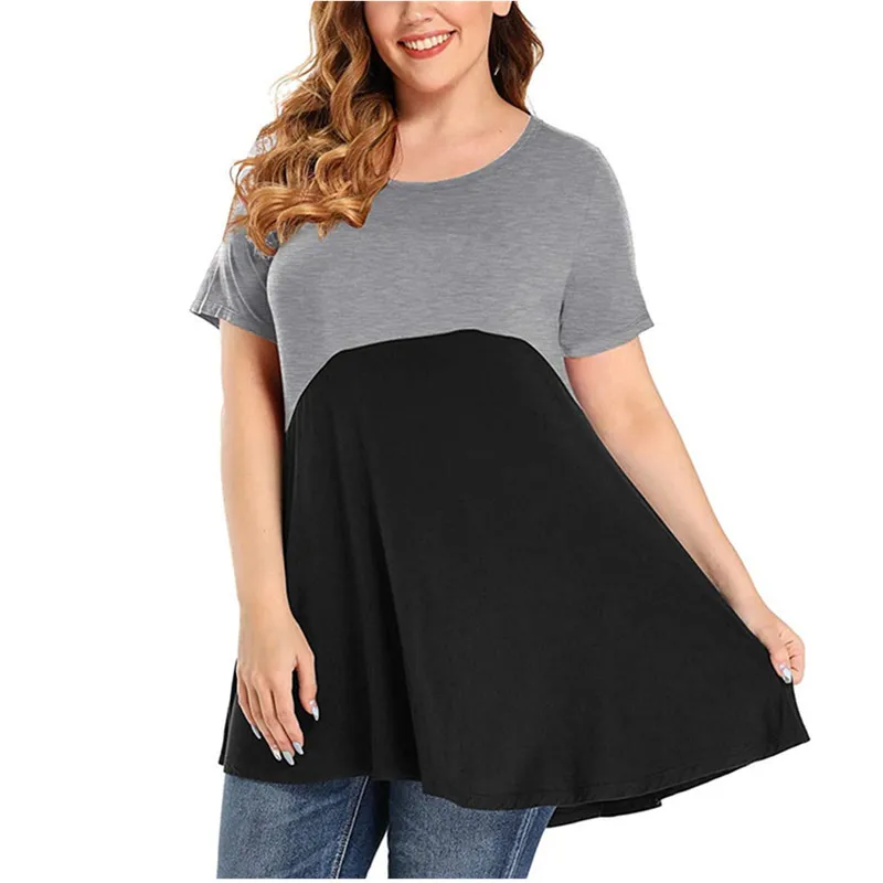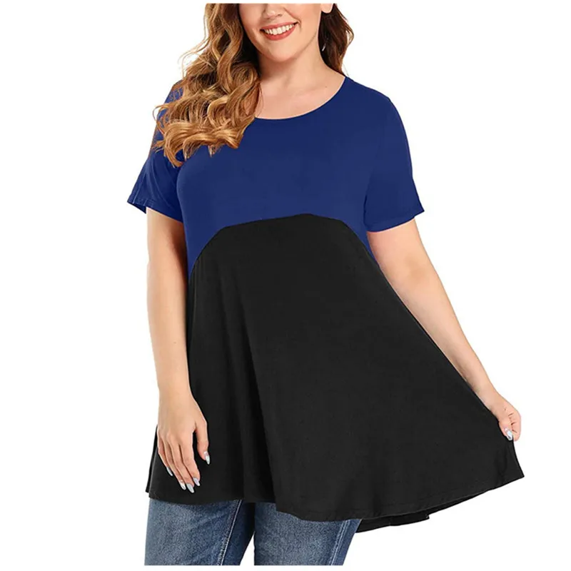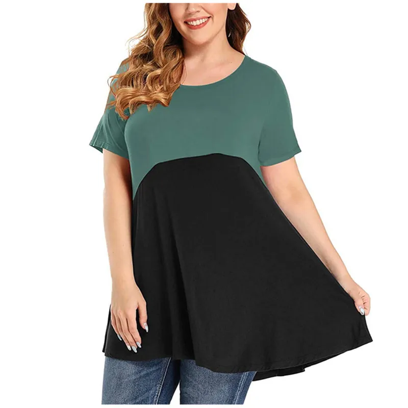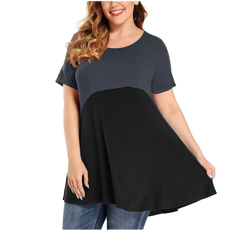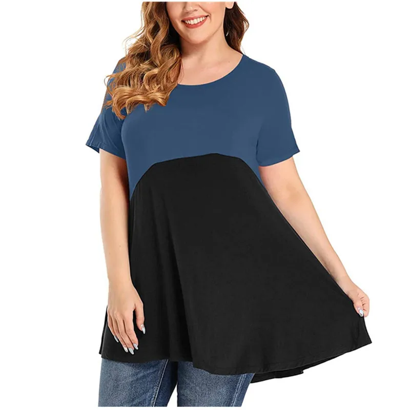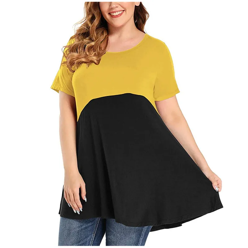 Women Shirt Plus Size Loose Short Sleeve Casual Ladies Contrast Colour Shirt.