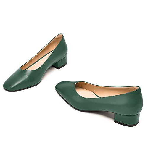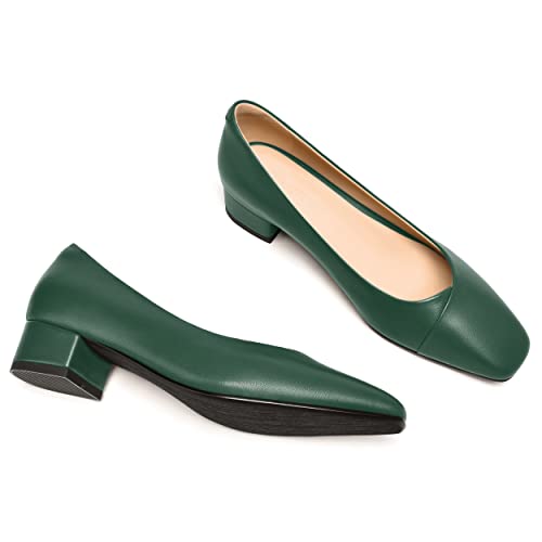 FEMSTEP Womens Matte Leather Fashion Wedding Square Toe Slip On Chunky Low Heel Pumps Shoes 1.5 Inch 1