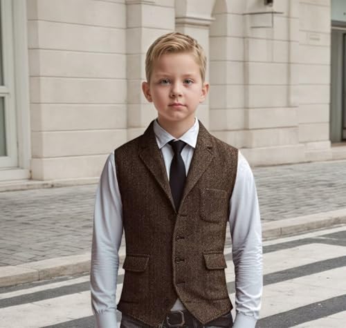 Boys Lapel Suit Vest for Kids Herringbone Tweed V-neck Waistcoat Youth Boy Homecoming Formal Sleeveless Jacket 6