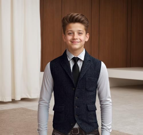 • High-quality Fabric: Boys Slim Fit Formal Suit Vest for Kids,we are crafted from premium herringbone tweed material.