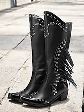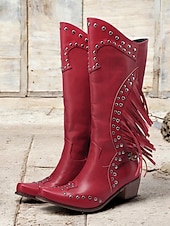 More information about Women's Tan Western Cowboy Boots with Fringe and Studded Details, Vintage Knee-High Boots for Rodeo and Country Outfits