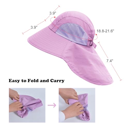 Kids Sun Hats Sunglasses Hat Clip Set Boys Girls Wide Brim Summer Hat with Neck Flap Beach Cap with Ponytail Hole 7