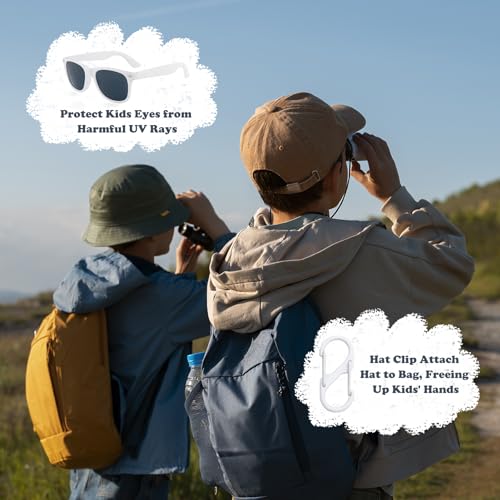 • Packaging Includes -- This set includes 1pc wide brim sun hat, 1pc fashion sunglasses and 1pc hat clip. Our ponytail hats are designed to protect child's delicate skin from harmful UV rays, while our sunglasses are crafted to protect their eyes. The hat clip attach hat to bag, freeing up kids' hands.
