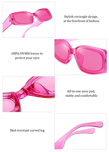 Dollger Rectangle Sunglasses for Women Men Retro Chunky Y2K Sunglasses Rectangular 90s 00s sunglasses Pink 5