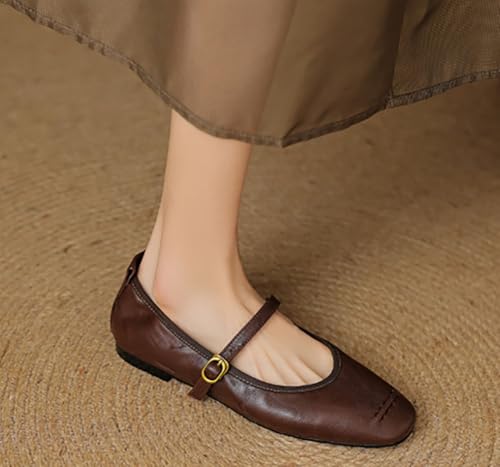 Women's Mary Jane Flats Dressy Comfortable Round Toe Ballet Flats Shoes with Buckle Strap Slip on Dress Shoes for Office Casual 7