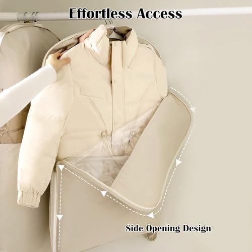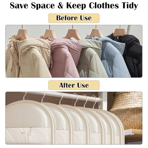 3Pcs Space Saving Hanging Garment Bag with Self Compression Zipper, Storage Bags Space Saver Closet Organizers Dust Cover 3 sizes for Down Coat Clothes Beige 5