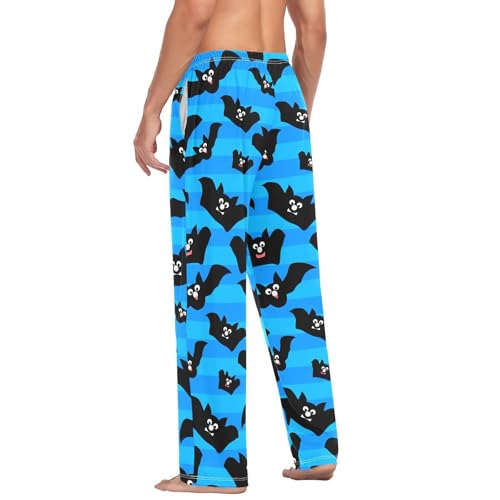 Bat Pattern Men's Cotton Pajama Pants with Pockets and Drawstring Comfortable and Stylish,S 6