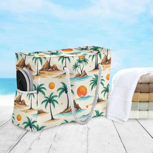 HOT ! susiyo Palm Trees and Suns Beach Bags for Women Large Travel Tote Bag Waterproof Sandproof Lightweight Swim Pool Bag for Family Outdoor
