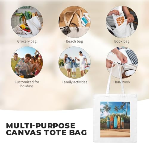 • Material: Our cloth grocery tote bag is made of canvas cloth, lock stitching inside for maximum strength allowing the Surf's up Surfboard tote bag to hold up extra bearing capacity, sturdy enough for all kinds of daily use