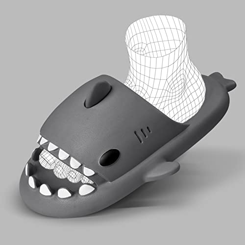 • 🌊Ergonomic Design:Shark slides are more fashionable and unique than similar slippers. Designed with a concave sole design protects your toes from kicking against table legs or door sills. The wrapping design fit the foot curve, more comfortable walking.