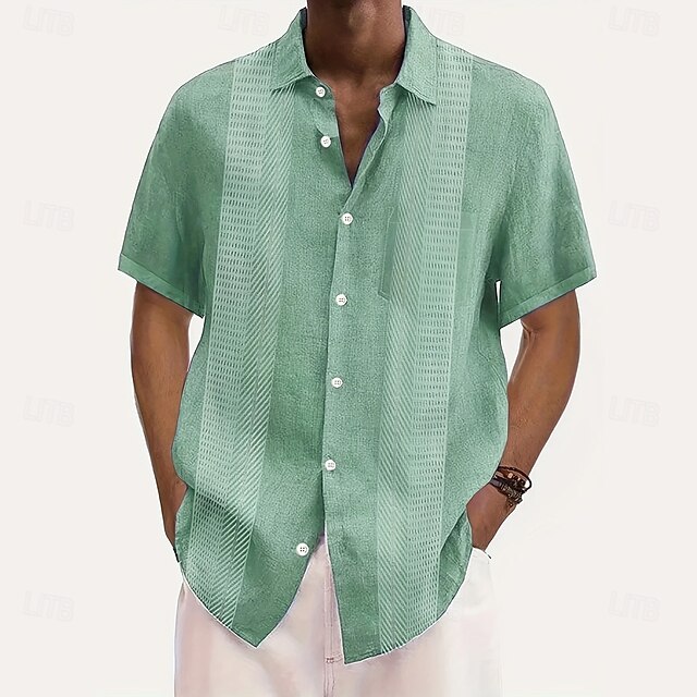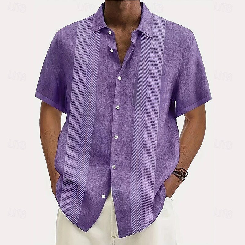 More information about Men's Geometric Line Shirt Casual Shirt Button Up Shirt Short Sleeve Fashion Casual Vacation Holiday Streetwear Summer Turndown 3D Print Front One Pocket Linen Like Shirt Blue Purple Green
