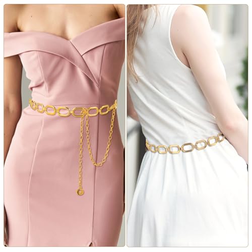 • 【Unique Design】: The gold belt adds a modern and sophisticated touch to any outfit. The gold chain belt features a square chain pattern, making it a standout accessory, looks amazing with any outfit