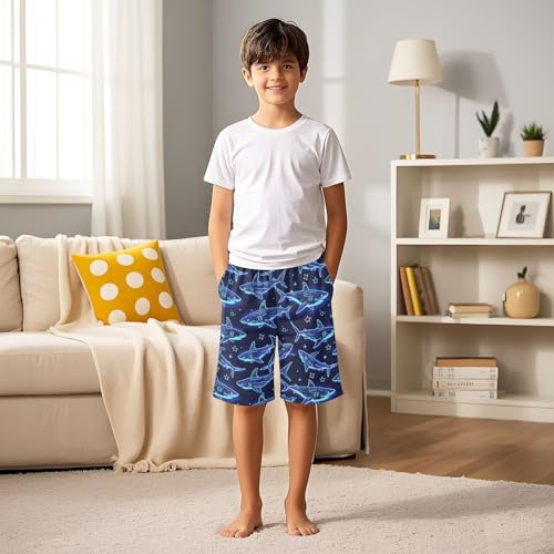 ALAZA Cute Shark Star Pajama Shorts Elastic Waist Casual Sleep Shorts with Pockets Size 6-14 3