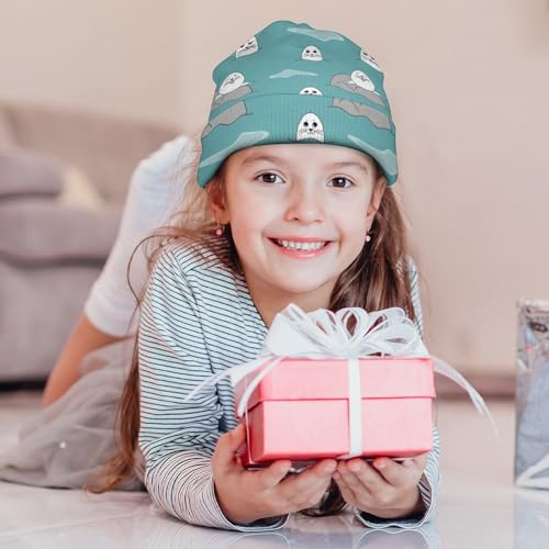 Sea Animal of Seal Pattern Kids Beanie Hat for for Girls Boys Children Cap Winter Knitted Chemo Cancer Headwear Accessories Gifts Decoration Black 4