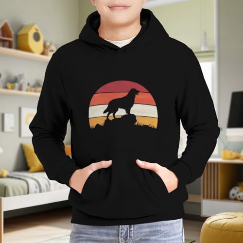 Kids Silhouette Retro Golden Retriever Pet Dog Boys Girls Lightweight Kangaroo Pocket Fleece Hoodies 4