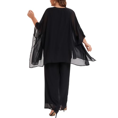 Plus Size Mother of Bride Pant Suits 3 Piece Chiffon Party Sets Handmade Sequins Wedding Guest Outfit 6