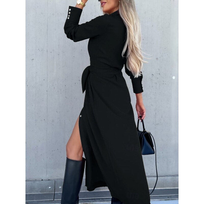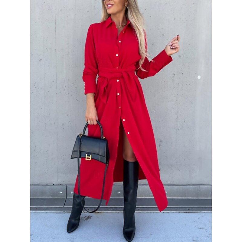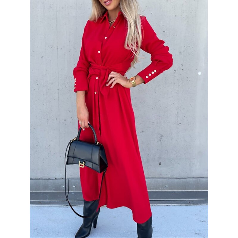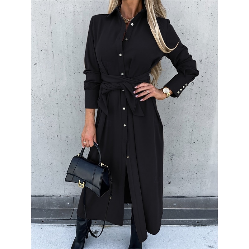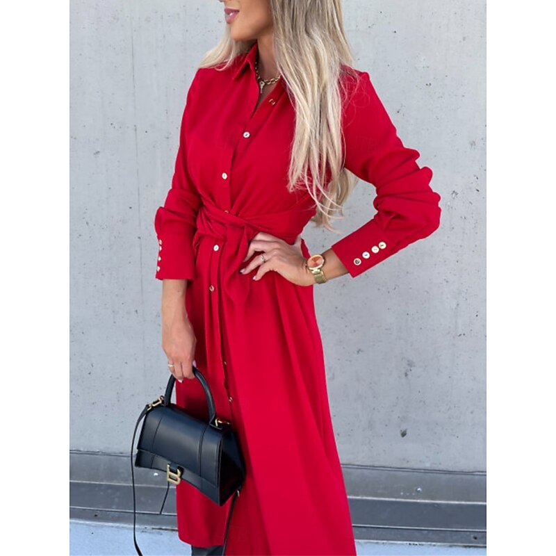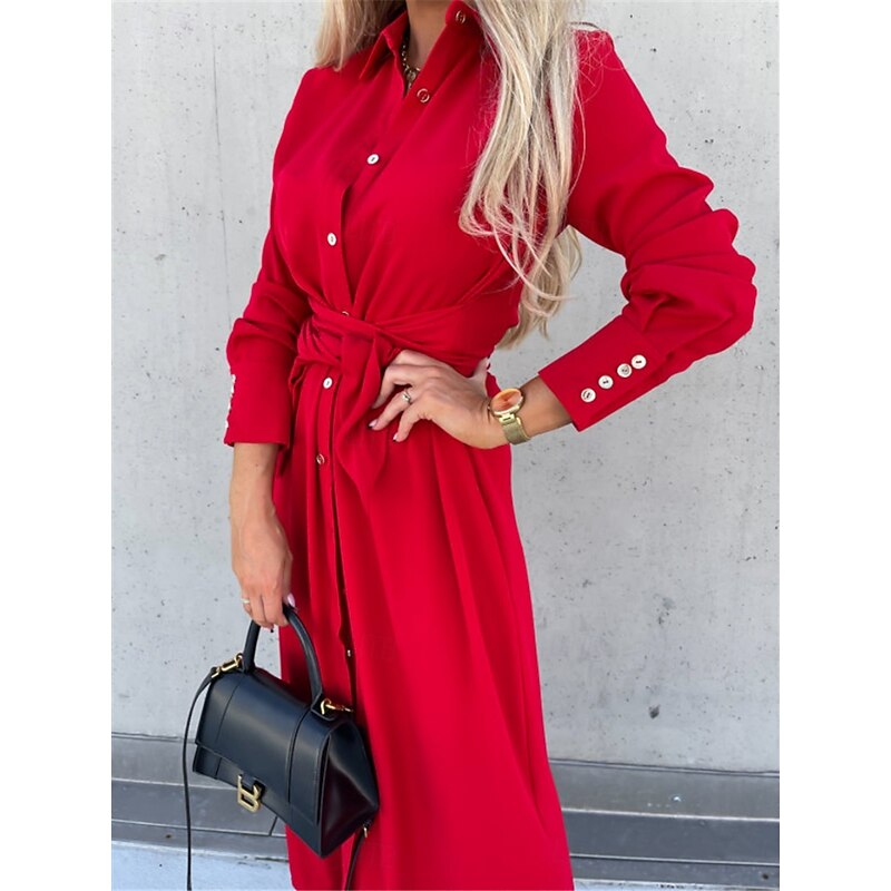 $31.99 - Women's Midi Dress A Line Dress Casual Daily Regular Fit Plain Long Sleeve Lapel Black Red Green Apricot Spring Fall Winter 2025. Shop for cheap Plain Dress online? Buy at lightinthebox.com on sale today!