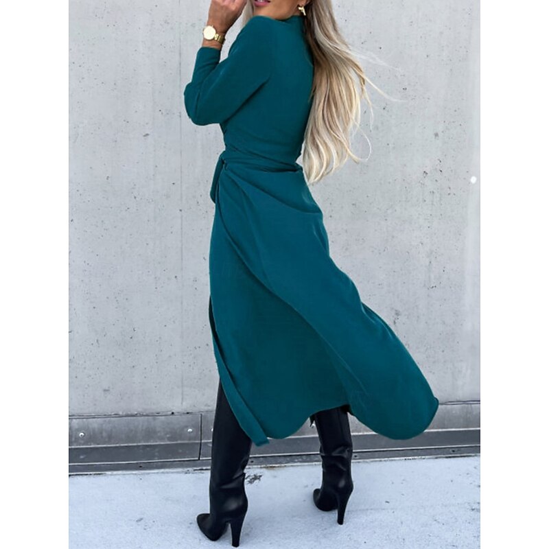 More information about Women's Midi Dress A Line Dress Casual Daily Regular Fit Plain Long Sleeve Lapel Black Red Green Apricot Spring Fall Winter
