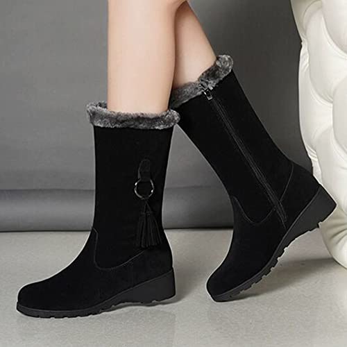 Keilinia Women's Winter Fashion Mid-Calf Snow Boots,2022 New Warm Faux Fur-Lined Non-slip Side Zip Suede Leather Tall Boots 6