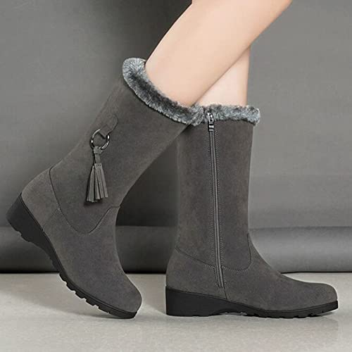 Keilinia Women's Winter Fashion Mid-Calf Snow Boots,2022 New Warm Faux Fur-Lined Non-slip Side Zip Suede Leather Tall Boots 7