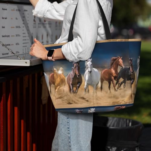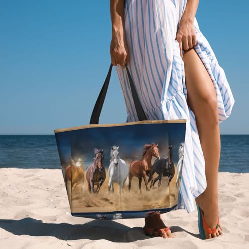HOT ! Horses Running Free Print Large Beach Tote Bag for Women Extra Large Capacity Sandproof Waterproof Pool Bag Suitable for Swimming Pool Gym Groceries Travel