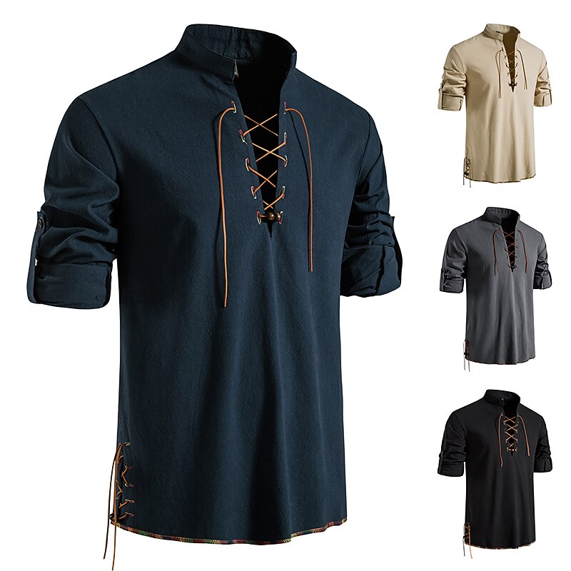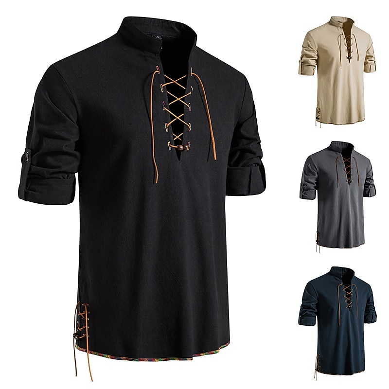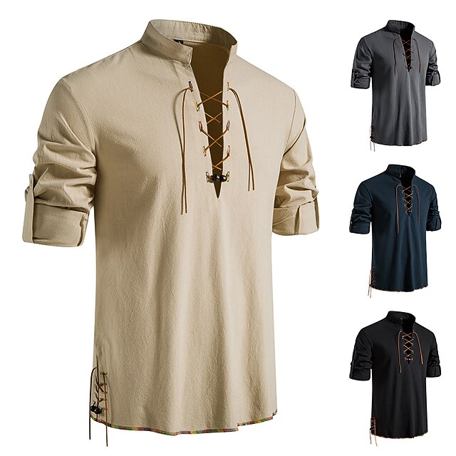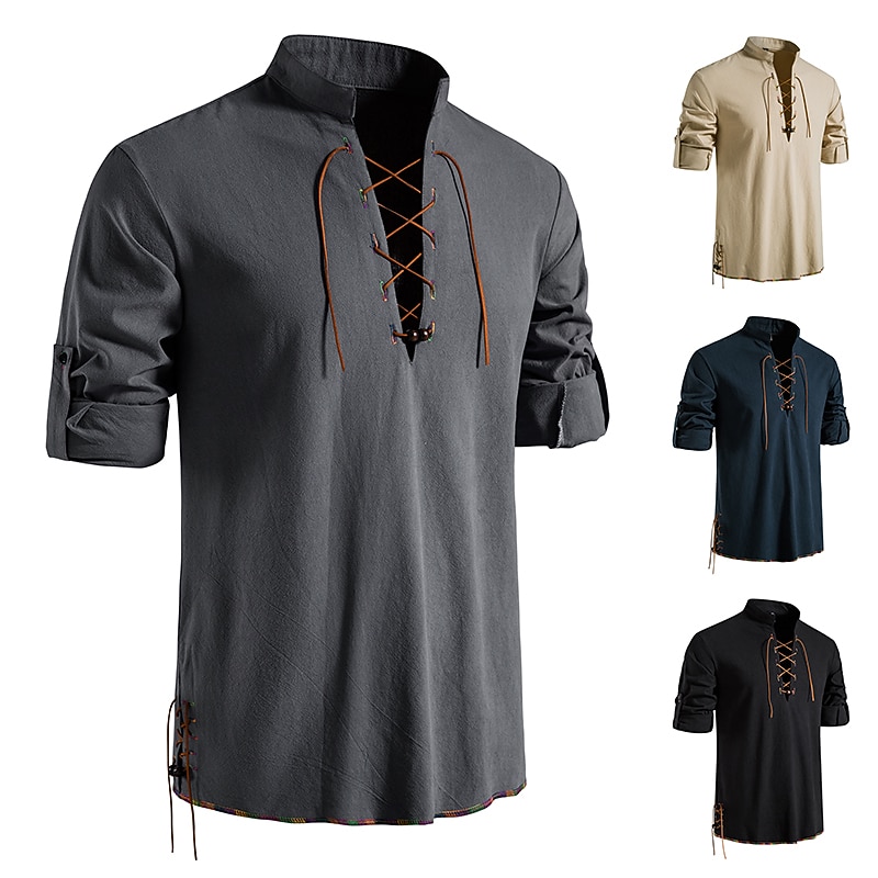 More information about Men's Linen Shirt Summer Shirt Casual Shirt Beach Shirt Holiday Vacation Daily Sea Blue Black Khaki Dark Gray Short Sleeve Standing Collar Clothing Apparel