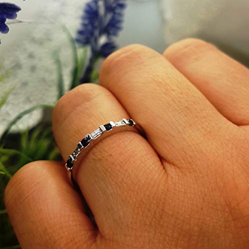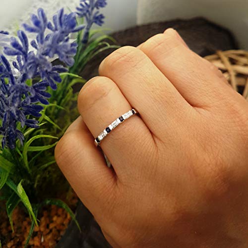 Dazzlingrock Collection 18K Blue Sapphire and White Diamond Womens Anniversary Wedding Band Stackable Ring, Solid White Gold 4