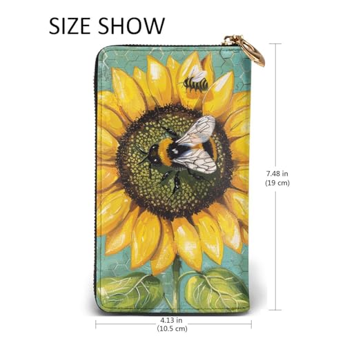 bee & Sunflowers Printed Long Wallet for Women Men Cute PU Leather Wallet with Coin Purse and Credit Card Holder 5