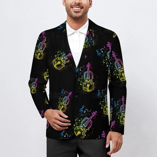 Colorful Violin Music Notes Casual Suits Jackets for Men Two Buttons Business Coat Wedding Dinner Party 1