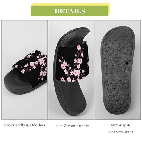 More information about Floral Cherry Blossoms Black Pink Womens Slide Sandals Non Slip Summer House Slippers for Girls Slip-on Flip Flops