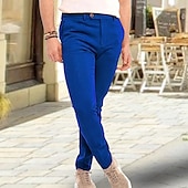 More information about Men's Dress Pants Trousers Chinos Buttons Pocket Plain Comfort Formal Party Work Fashion Classic Style Yellow Pink Micro-elastic