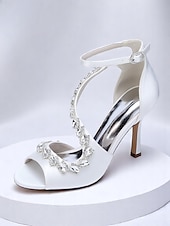 More information about Women's White Stiletto Heels with Crystal Embellishments and Ankle Strap - Elegant Peep-Toe Dress Sandals for Cocktail Parties and Formal Events