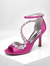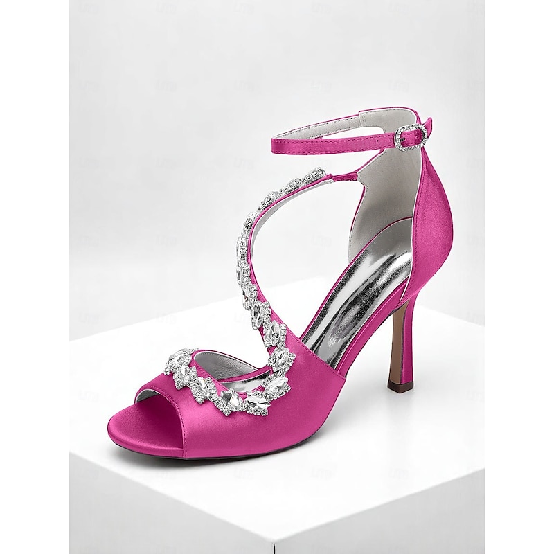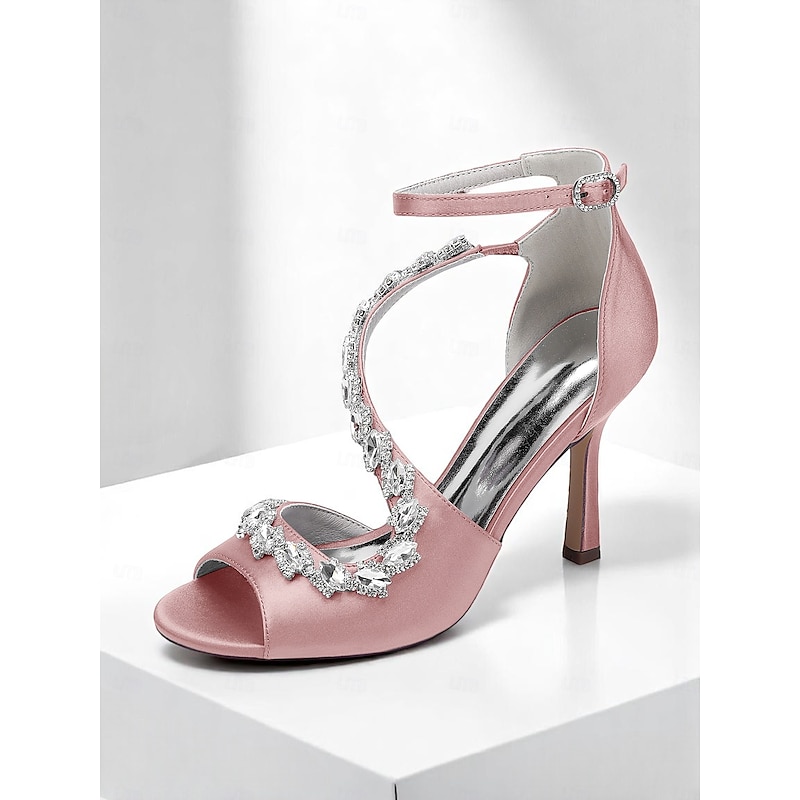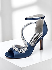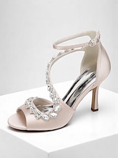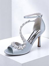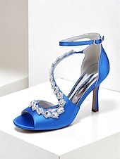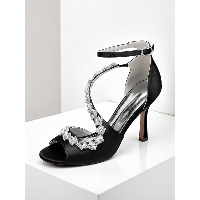 Highlights - Luxurious satin upper for a elegant look - Synthetic leather lining for comfort and durability - Stunning rhinestone embellishment for a touch of glamour - Stylish peep toe design - Durable rubber outsole for long-lasting wear