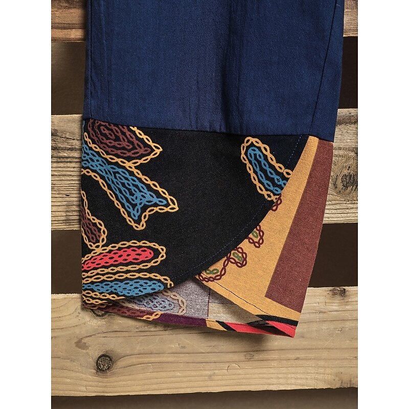 More information about Women's Slacks Pants Trousers Vacation Vintage Ethnic Style Full Length High Waist Floral Graphic Geometic Elastic Waistband Comfy Breathability Soft Inelastic Outdoor Street Daily Black Navy Blue