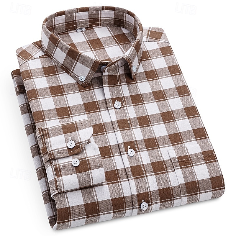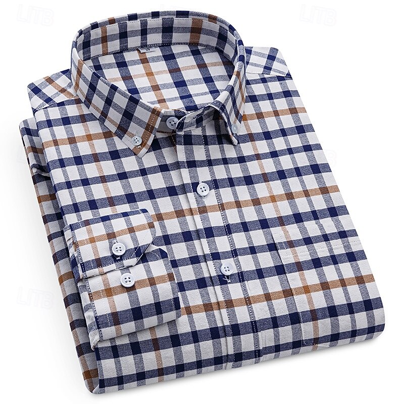 More information about Men's Shirt Dress Shirt Button Down Shirt Oxford Shirt Collared Shirt Plaid / Striped / Chevron / Round Daily Wear Corporate Clothing White Red Dark Navy Blue Long Sleeve Shirt Collar All Seasons