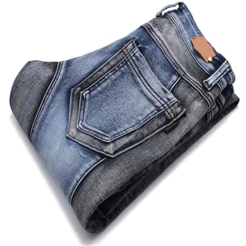 More information about Men's Stretch Jeans Fashion Slim Fit Patchwork Denim Trousers Male Streeetwear Straight Pants