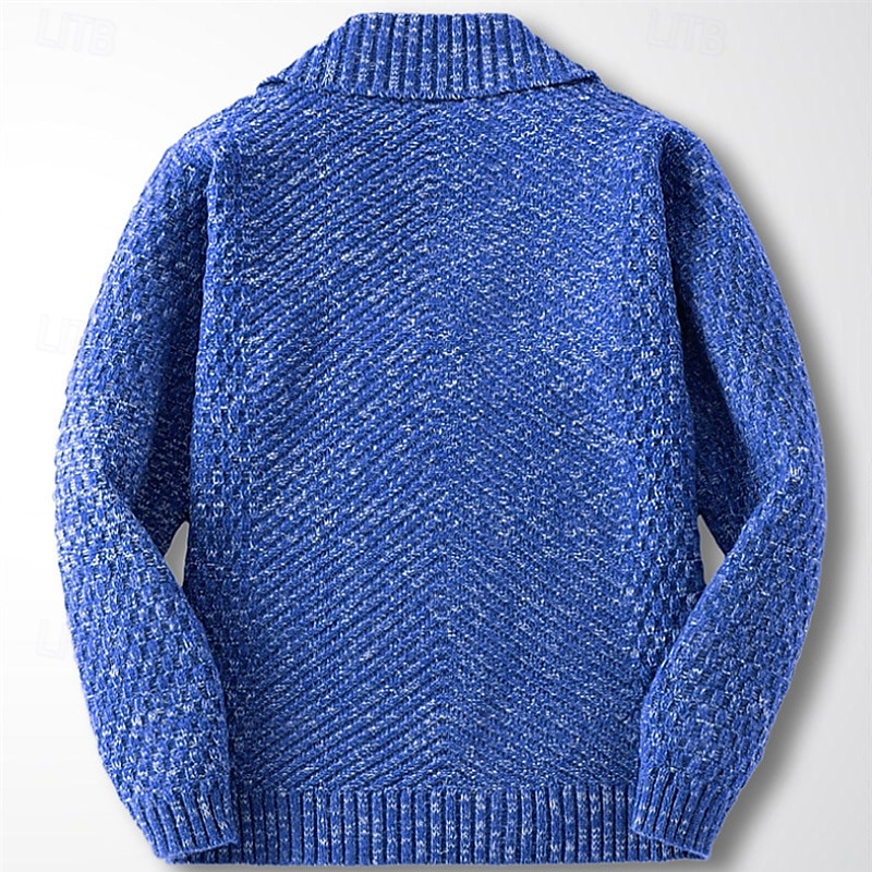 More information about Men's Cardigan Sweater Cropped Sweater Knit Sweater Ribbed Knit Regular Pocket Solid Color Shawl Collar Fashion Classic Daily Wear Date Clothing Apparel Fall & Winter Navy Blue Brown S M L