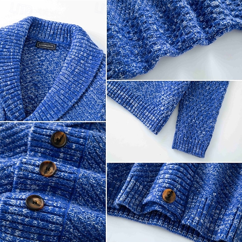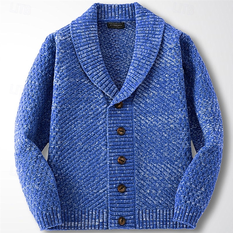 Highlights [Fabric]: Crafted from a high-quality polyester knit, this men's cardigan sweater offers micro-elasticity for added comfort and warmth. The ribbed knit style adds a sophisticated texture to the solid color design, perfect for fall and winter wear. [Fit]: Designed with a regular fit, this cardigan offers a relaxed silhouette that makes it ideal for layering. Its cropped length and classic button-up style allow for versatile styling options. [Design Highlights]: Featuring a chic shawl collar, this cardigan includes large, contrasting buttons that add visual interest. The practical pocket design enhances usability, while the ribbed knit texture provides an appealing depth to the fabric. [Occasions]: Perfect for daily wear, weekend outings, vacation trips, or even date nights, this cardigan offers a blend of classic and casual styles suitable for a range of settings. [Size Range]: Available in a wide size range from S to 4XL, this cardigan is versatile enough to accommodate various body types. The size options ensure a comfortable fit for everyone.