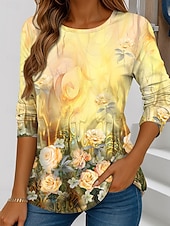 More information about Women's T shirt Long Sleeve Crew Neck Long Sleeve Tunic Graphic Plants Vintage Stylish Classic Regular Tops Daily Weekend Print Yellow Blue Purple Orange Prefall