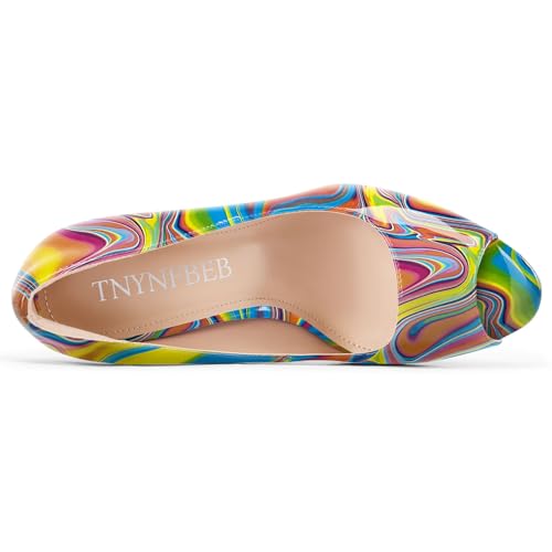 More information about TNYNFBEB Peep Open Toe Stiletto High Platform Heel Pumps Slip-on Prom Party Dress Patent Leather 5.3 Inches Heels