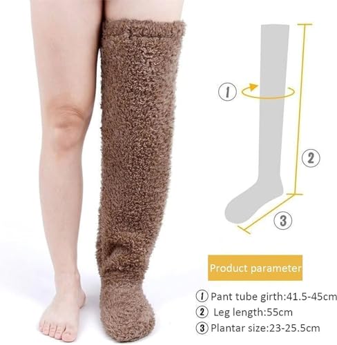 • 【One Size】--- Our Fashion plush fuzzy slipper sleep socks for women suitable for everyone. Ankle to Knee Length - 55cm, Toe to Ankle Length - 24cm, Circumference of Calf Length - 42cm.