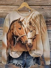 More information about Women's Pullover Casual Animal Dailywear Casual Crew Neck Print Long Sleeve Khaki Fall Winter