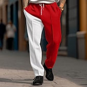 Highlights Men's Sweatpants Highlights [Fabric]: These wide-leg men's sweatpants are made from a high-quality polyester fabric that offers a micro-elastic feel, ensuring both comfort and breathability. The fabric choice makes them ideal for casual, everyday wear. [Fit]: Designed with a relaxed, regular fit, these sweatpants offer ample room for movement while maintaining a modern, streamlined appearance. The mid-waist cut provides a comfortable and secure fit, suitable for diverse body types. [Design Highlights]: The sweatpants feature a striking color block pattern, combining contrasting hues for a bold look. They include functional side pockets for added convenience and an adjustable elastic drawstring waistband for a customizable fit. [Occasions]: Perfect for outdoor sports, daily activities, or simply lounging at home. These sweatpants are versatile enough to suit a variety of casual and relaxed settings, offering a blend of style and utility. [Size Range]: Available in sizes S, M, L, XL, 2XL, and 3XL, accommodating a wide range of body sizes and ensuring a suitable fit for many individuals.