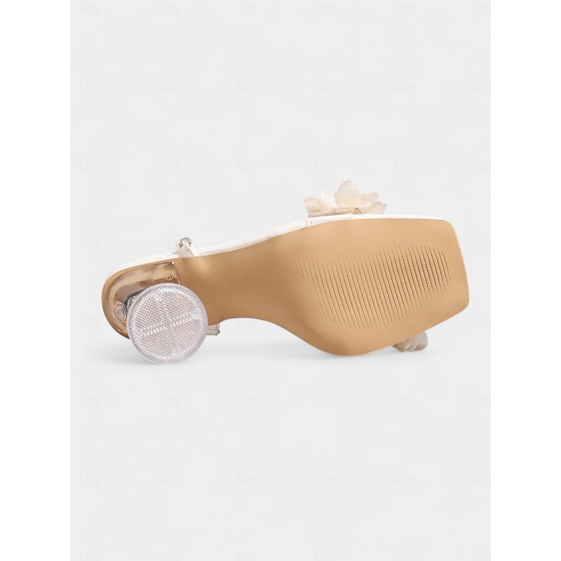 More information about Women's Ivory Floral Pearl Ankle Strap Sandals with Clear Heel - Elegant Wedding and Evening Party Shoes