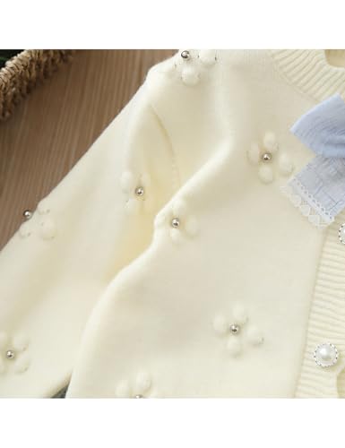 • Cardigan & Skirt Set for Girls: This top is a cute pink/purple/beige knit cardigan designed for toddlers. It features a round neck and long sleeves, with a row of buttons down the front for easy wearing. There are 3D flowers and a delicate bow, which are sweet & delicate. The pleated skirt comes in lovely color like purple, light pink, or light blue, the pleats add a touch of liveliness and movement, complementing the corresponding cardigan perfectly.