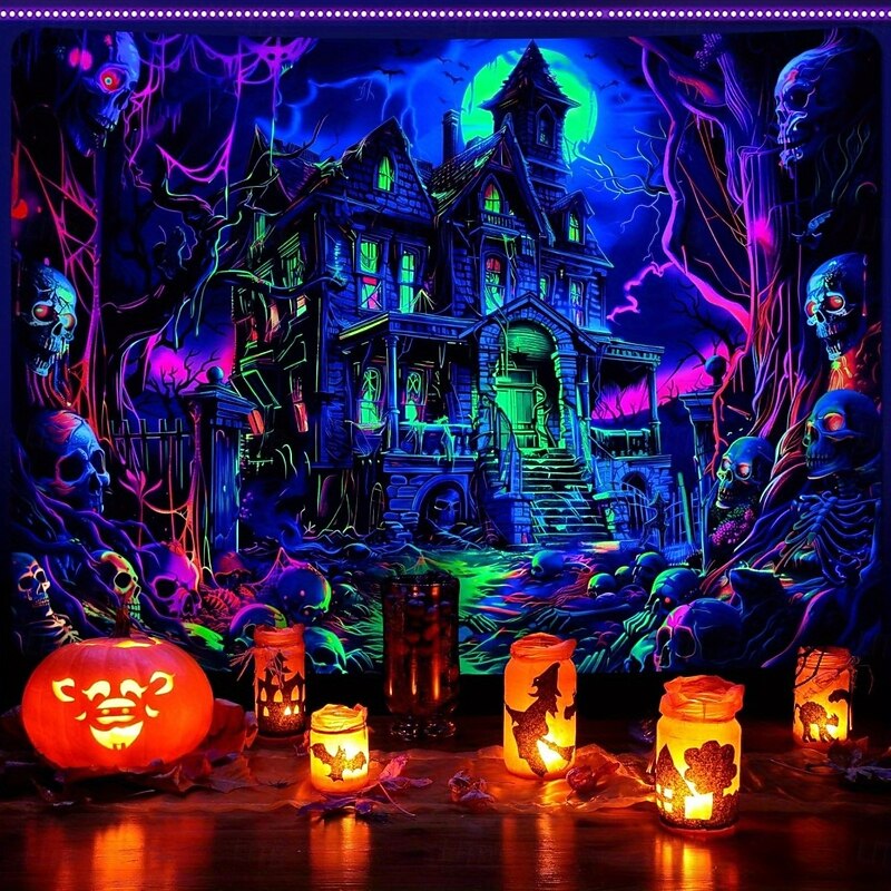 $15.49 - Halloween Blacklight Tapestry with Bats and Pumpkins – UV Reactive Fluorescent Glowing Skeleton Wall Hanging for Halloween Party, Trippy Spooky Wall Decor for Bedroom Living Room 2025. Shop for cheap Halloween Wall Tapestries online? Buy at lightinthebox.com on sale today!