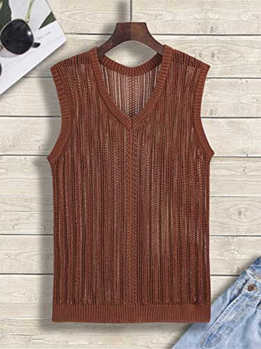HOT ! SweatyRocks Men's Casual Solid V Neck Knitted Vest Tank Top Sleeveless Knitwear
