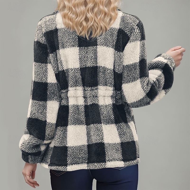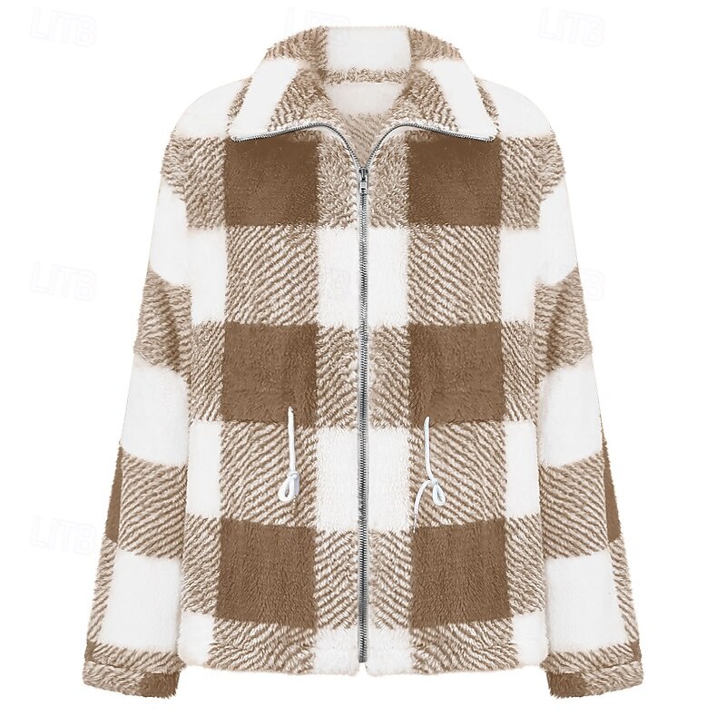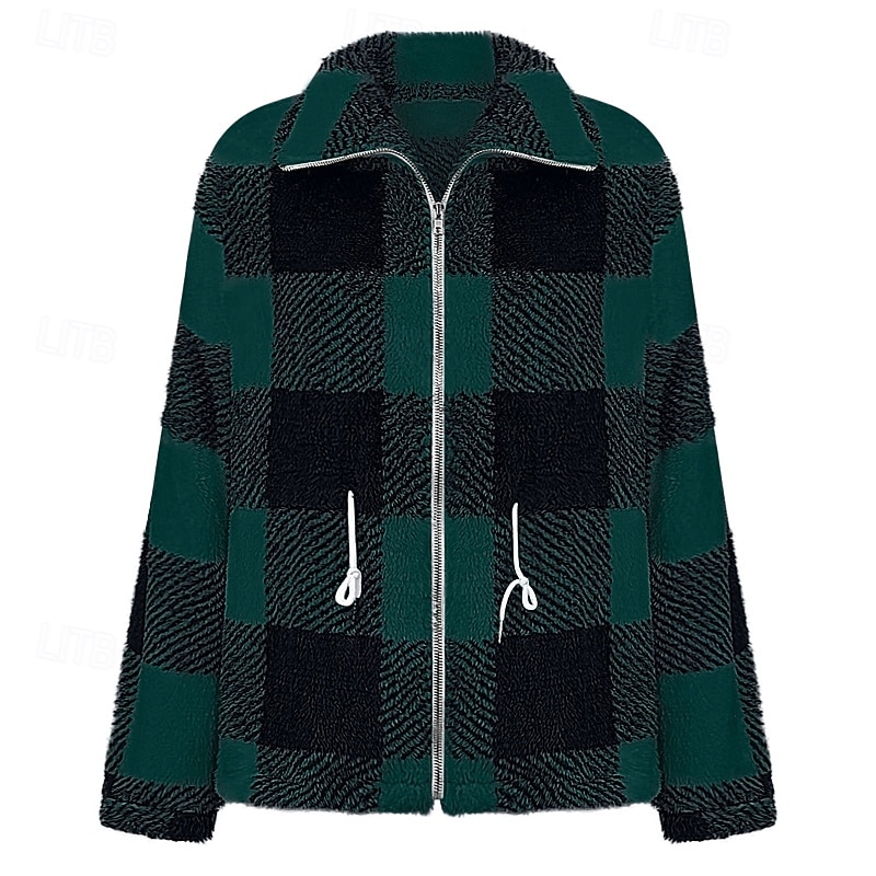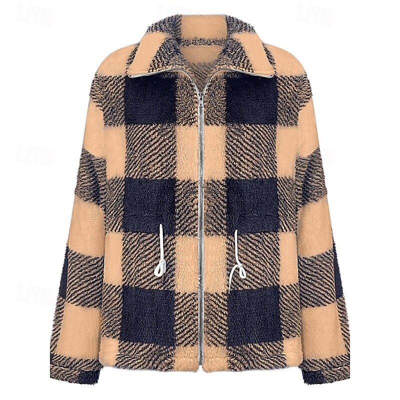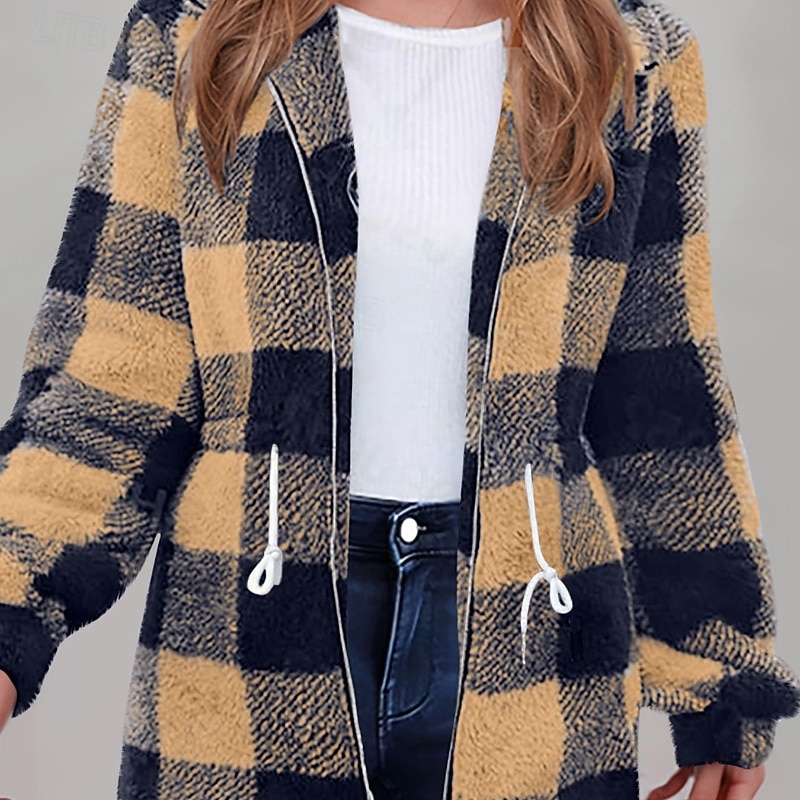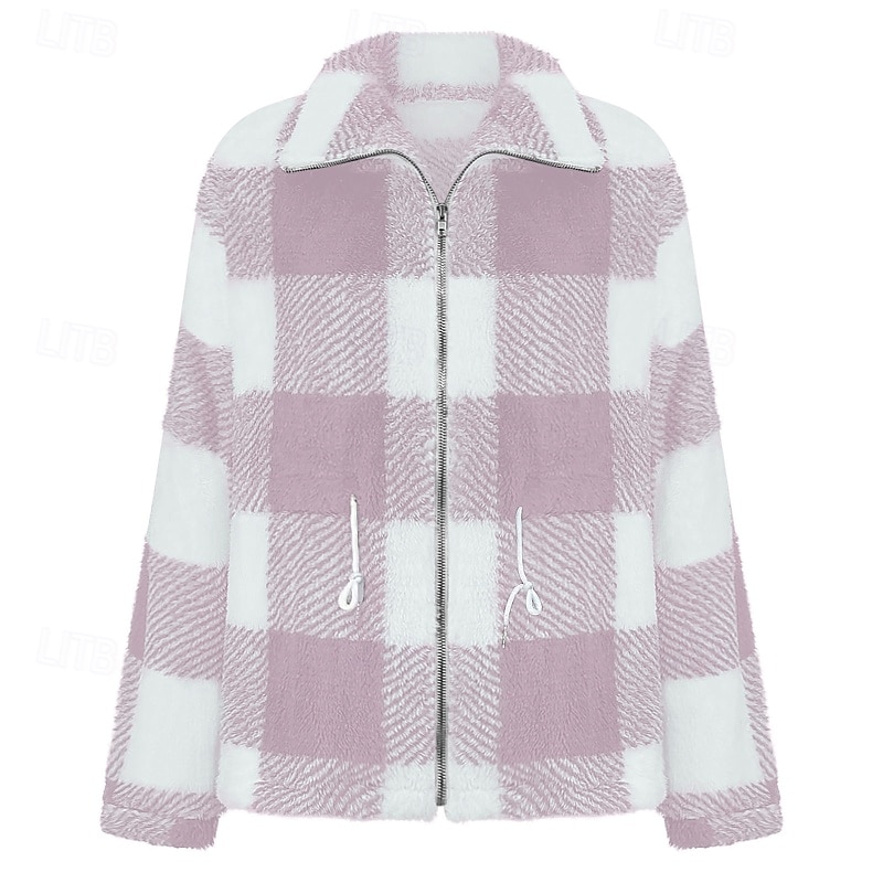 More information about Women's Casual Jacket Warm Comfortable Zipper Pocket Casual Plaid Street Going out Weekend Zipper Regular Turndown Regular Fit Long Sleeve Outerwear Black Yellow Pink Fall Winter