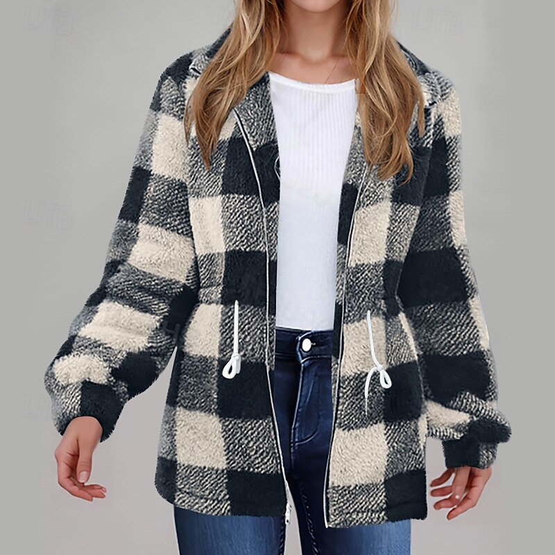Women's Casual Jacket Warm Comfortable Zipper Pocket Casual Plaid Street Going out Weekend Zipper Regular Turndown Regular Fit Long Sleeve Outerwear Black Yellow Pink Fall Winter 22